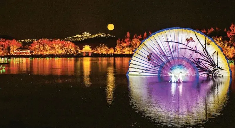 图为2016年9月4日,在西湖湖面举行的G20杭州峰会文艺演出《最忆是杭州》。这场艺术盛宴,向世界传达出融合共处的美好愿景,传递着中国的文化自信。视觉中国供图