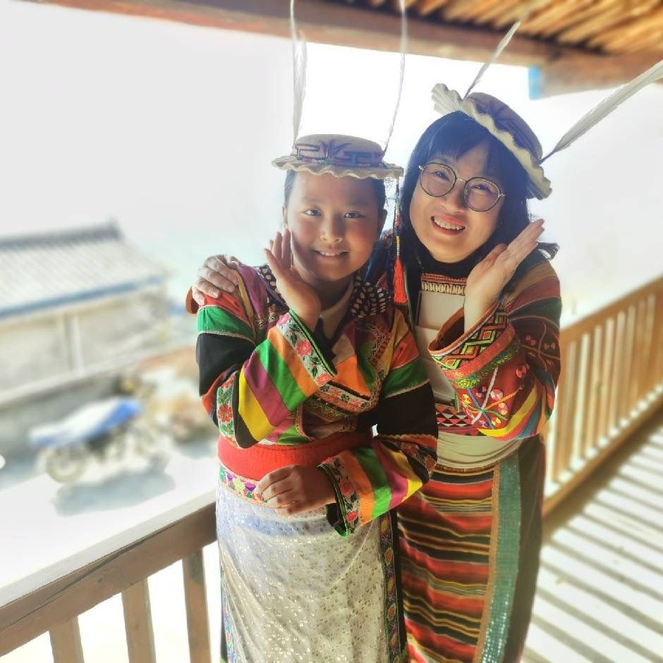 浴辉的微信头像是与班琴的合影。两人身着白马服饰温情相依的一幕,不仅是新闻人以声为舟,济困励志的初心映照,更是跋涉不辍的帮扶写照。