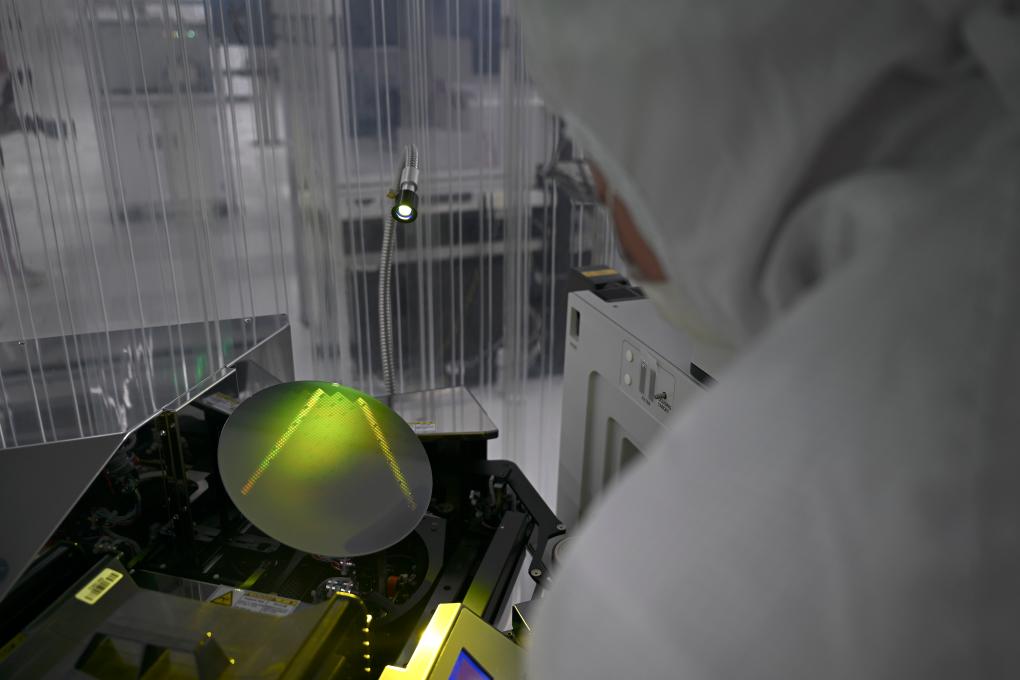 安徽华鑫微纳集成电路有限公司的工作人员在检测MEMS晶圆。新华社记者 黄博涵 摄
