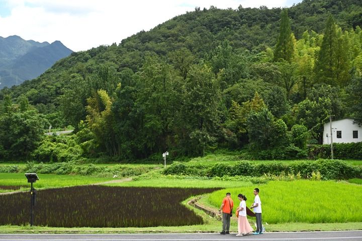 2025年8月6日,游客在浙江省湖州市安吉县余村观赏五彩田园景观。新华社记者 毛竹 摄