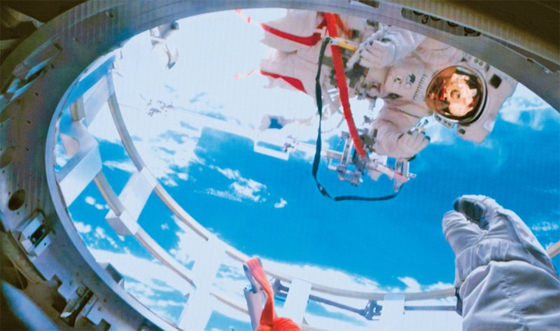 2024年,“神舟”飞天、“北斗”组网、“嫦娥”探月、“天眼”巡空,创新驱动的“中国号”巨轮向着科技强国的目标奋勇前进。图为2024年12月17日在北京航天飞行控制中心拍摄的神舟十九号航天员蔡旭哲(上)、宋令东(下)在气闸舱舱门内外工作的画面。新华社记者 李杰/摄