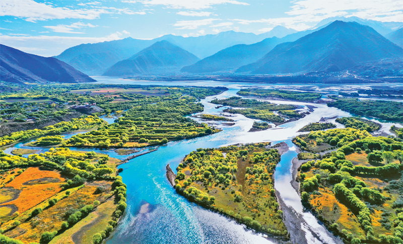 党的十八大以来,以习近平同志为核心的党中央全面加强生态文明建设,坚定不移走生态优先、绿色发展之路,美丽中国建设迈出重大步伐。图为2024年10月24日拍摄的西藏林芝雅尼国家湿地公园(无人机照片)。新华社记者 李贺/摄