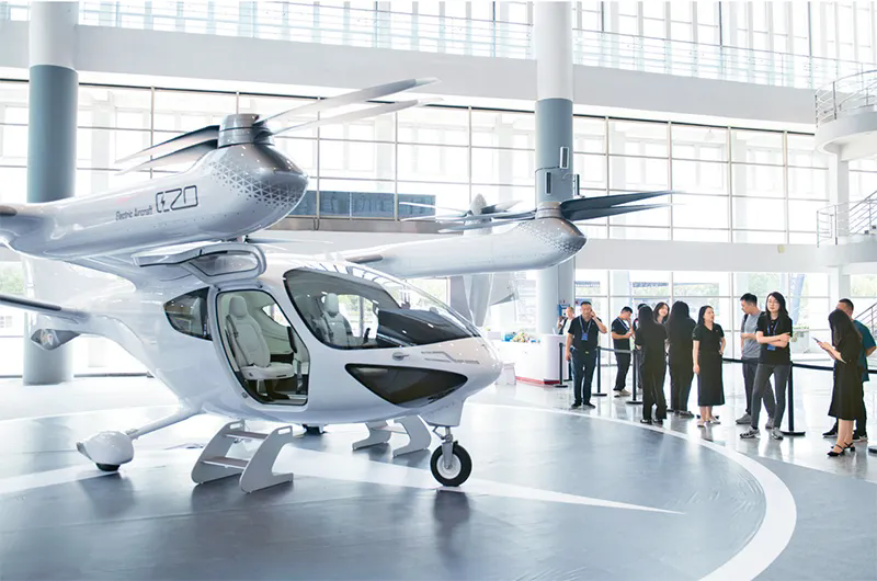 图为2024年9月6日,观众在2024低空经济发展大会创新成果展区了解一款电动垂直起降飞行器。新华社记者 傅天/摄