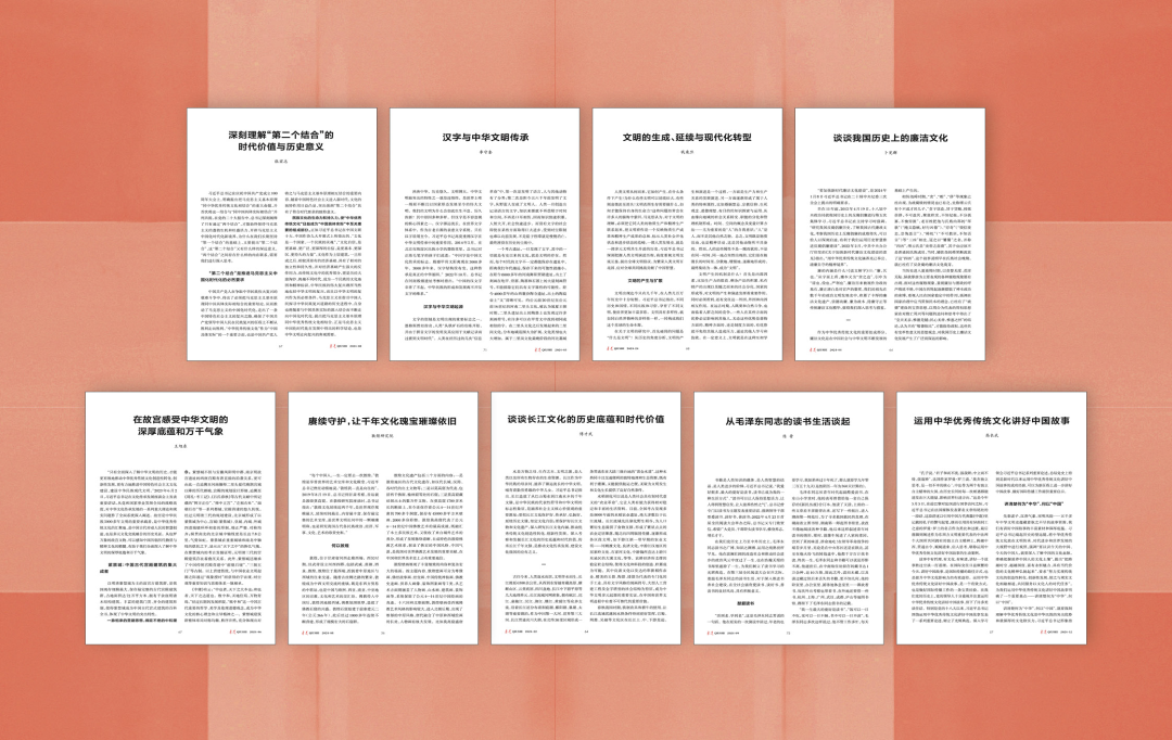 4.深入宣传阐释习近平文化思想,展现宣传思想文化工作新气象新作为。一是在文艺工作座谈会召开十周年之际,刊发习近平总书记重要文章《在文艺工作座谈会上的讲话》,撰写刊发本刊编辑部文章《为强国建设、民族复兴提供丰厚精神滋养》,组约刊发文联党组、作协党组的配套阐释文章,展现新时代文艺领域改革取得的显著成就。二是紧紧围绕习近平文化思想蕴含的重大创新观点、科学方法论,紧密结合党的二十届三中全会关于文化体制机制改革重大部署,推出本刊评论员文章《在新征程上高举起我们党的文化旗帜》以及文旅部党组等阐释文章,深刻阐明习近平文化思想的重大意义、丰富内涵以及关于新时代文化建设的战略部署。三是加强学理化阐释,组约刊发李守奎、钱乘旦等专家学者的理论文章,将专家学者的学术研究与党的创新理论有机融合,深刻阐释习近平文化思想蕴含的道理学理哲理。