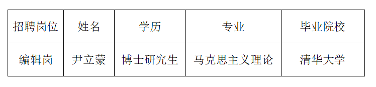 根据事业单位公开招聘工作有关规定,现就以下1名拟聘用人员进行公示。如有异议,可通过电子邮件或电话方式反映,或直接通过中央和国家机关所属事业单位公开招聘服务平台反映。